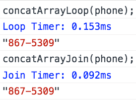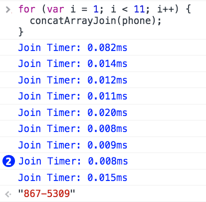 Let's apply the timers to different methods of concatenating all the members of an array into a string.